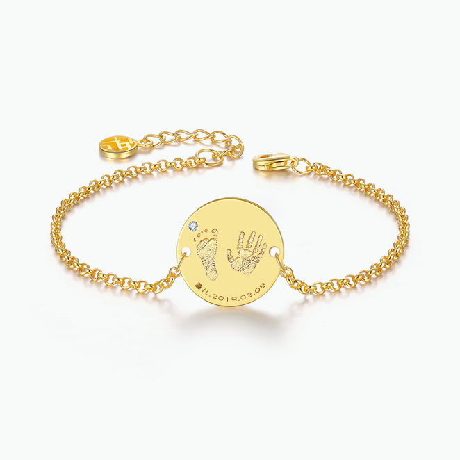 Baby Hand and Footprints Round Brand Silver Bracelet